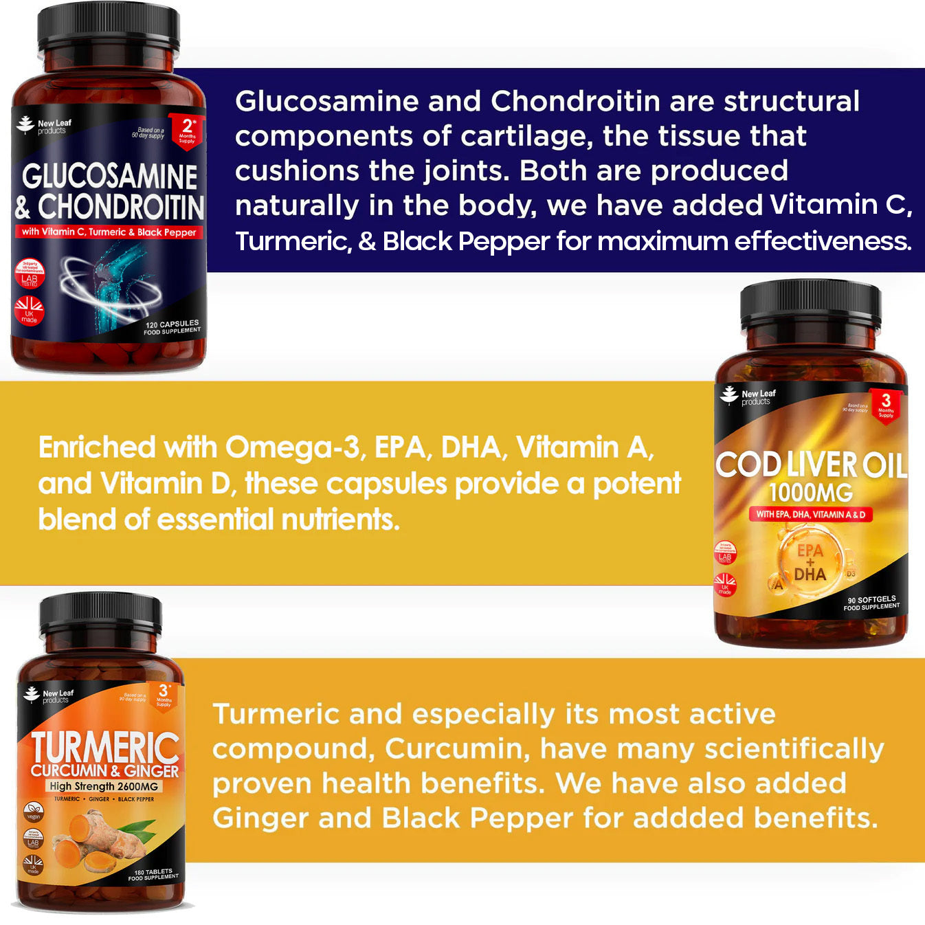 Joint Health Bundle Turmeric , Glucosamine, Cod Liver Oil Tablets