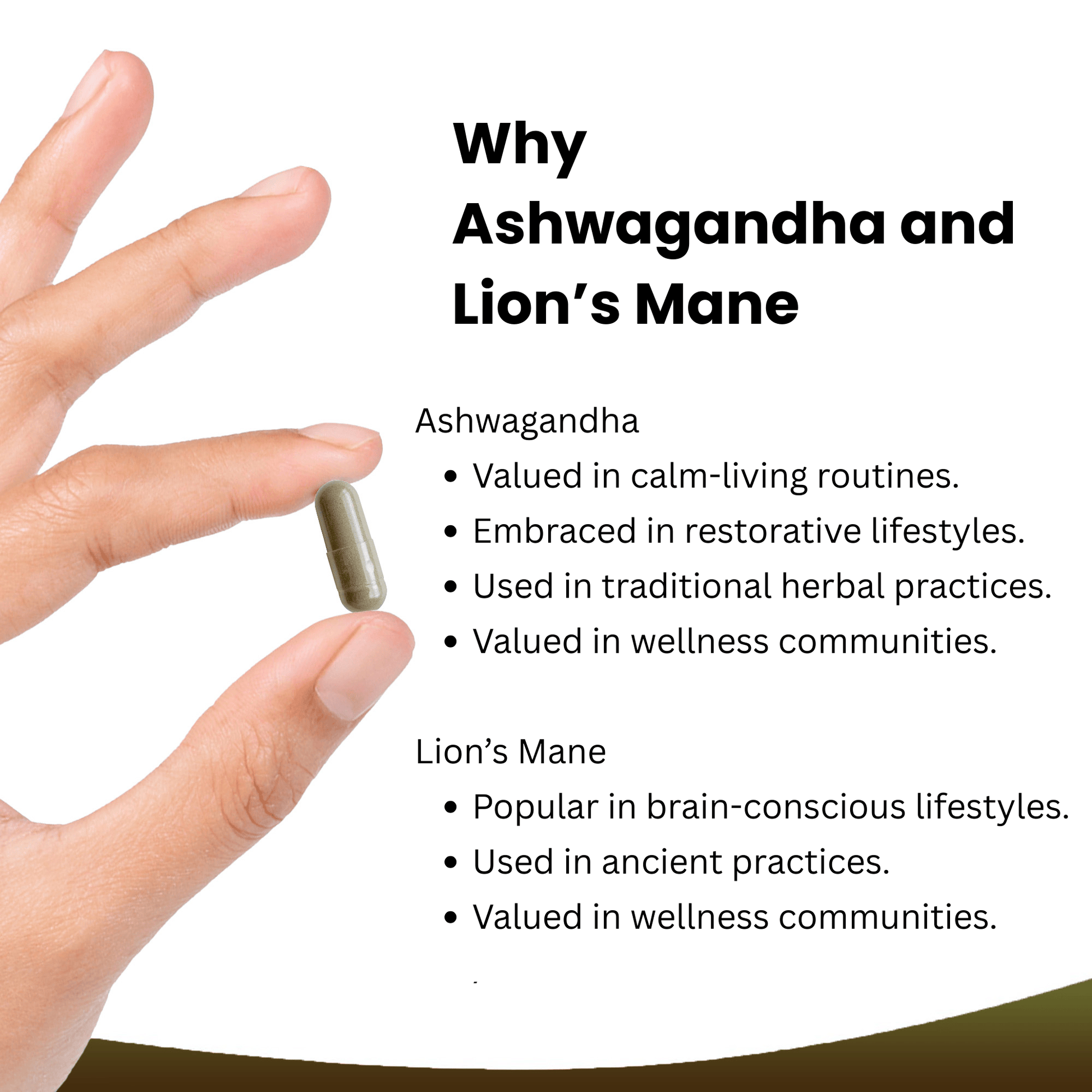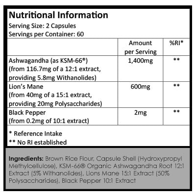 Each serving of these capsules is enriched with Black Pepper extract, which is known to enhance the bioavailability of nutrients. Black Pepper contains piperine, a compound that improves the absorption of Ashwagandha KSM-66 and Lion's Mane, ensuring that your body can effectively utilize these potent ingredients. This combination maximizes the benefits, making the most out of every capsule and supporting your well-being more efficiently.