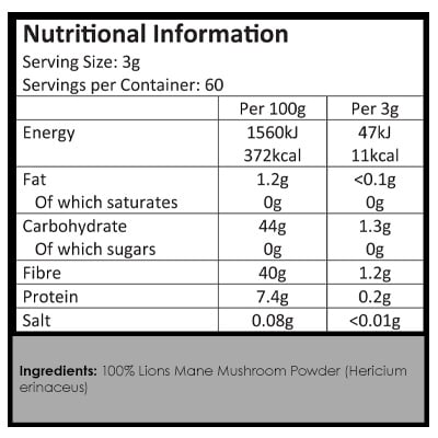 - Each serving provides 3000mg of Lion’s Mane powder.