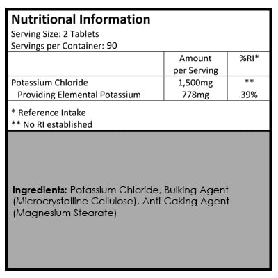 Active Potassium Chloride contributes to normal muscle function, Potassium is essential for proper muscle contractions, making it an important nutrient for exercise and active individuals. Each value bottle contains 180 Potassium tablets which will last 3 months when taking two tablets per serving. Each tablets are smaller than average and easier to swallow.