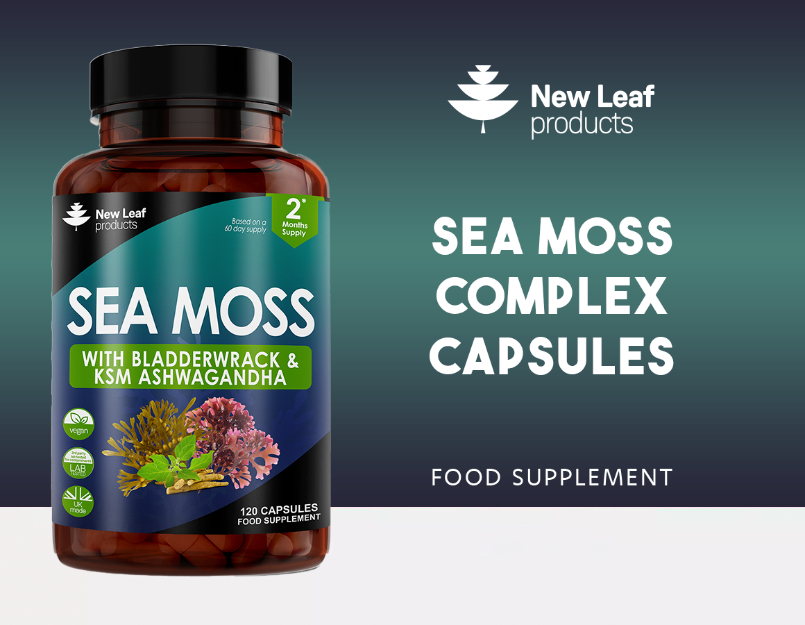 New Leaf's Sea Moss Complex is a carefully crafted supplement combining Irish Sea Moss, Bladderwrack, and KSM Ashwagandha. Irish Sea Moss, a red algae, is harvested from the nutrient-rich waters of the Atlantic Ocean. This natural sea vegetable has been traditionally used for centuries, prized for its wide range of nutrients and minerals - known to contain 92 of the 102 minerals found in the human body. Each bottle contains 120 capsules, offering a two-month supply.