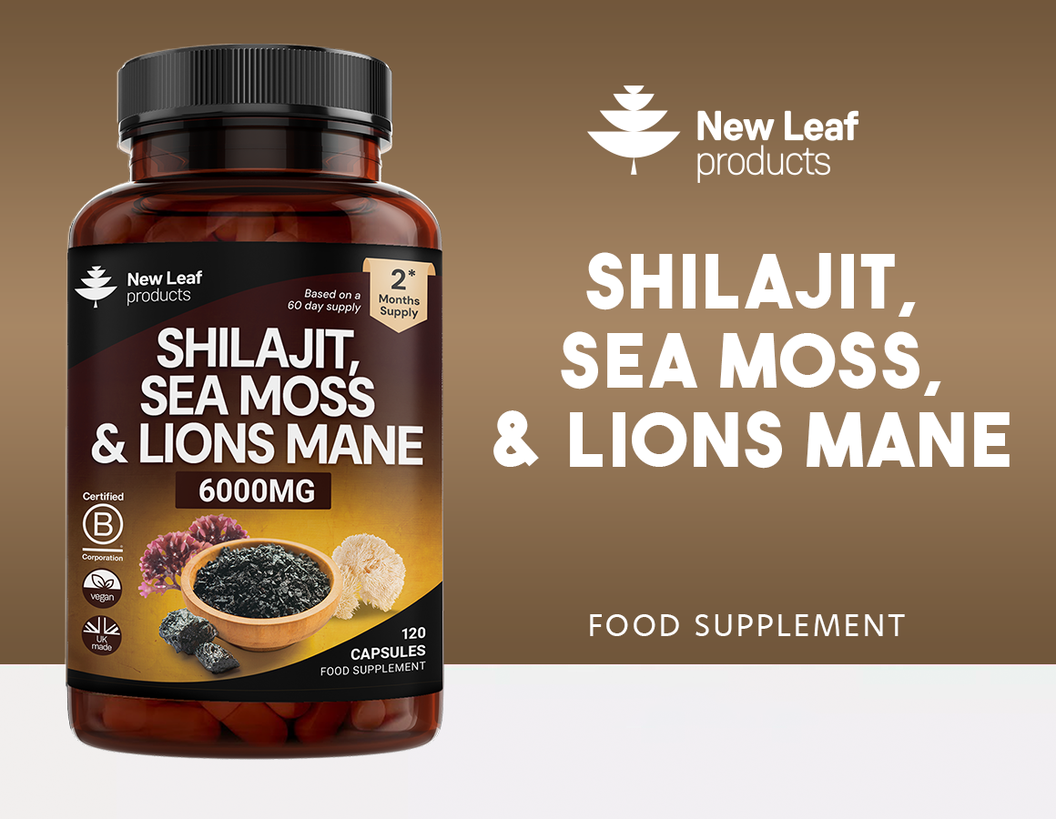New Leaf’s Shilajit, Sea Moss & Lions Mane Capsules provide 6000mg per serving, combining three powerful extracts. Shilajit, rich in fulvic acid, is a mineral-packed substance found in mountainous regions like the Himalayas. This natural ingredient is formed over centuries from plant decomposition and is highly valued in traditional practices. With 120 capsules, this supplement offers a two-month supply.