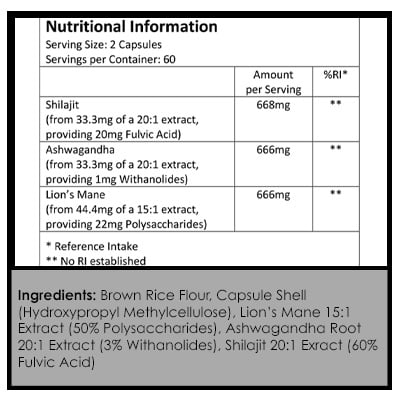 Shilajit, Lion’s Mane, and Ashwagandha Complex