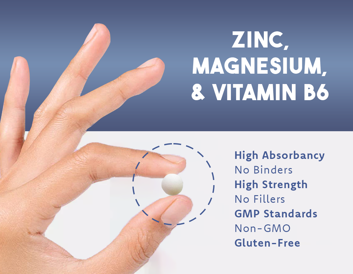 Considered one of the immunity supplements, Zinc contributes to normal DNA synthesis, metabolism, as well as normal protein synthesis and normal testosterone levels in the blood. Magnesium contributes to normal muscle function and energy-yielding metabolism. Vitamin B6 contributes to the reduction of tiredness and fatigue (EFSA).